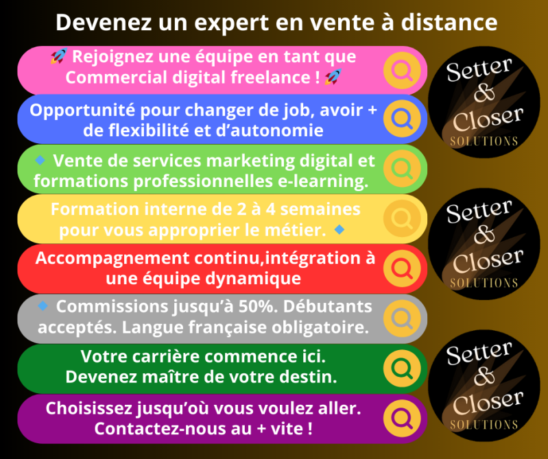 - Formation de closers : Nous proposons des formations sur mesure pour les professionnels qui souhaitent apprendre les techniques de closing les plu s efficaces.